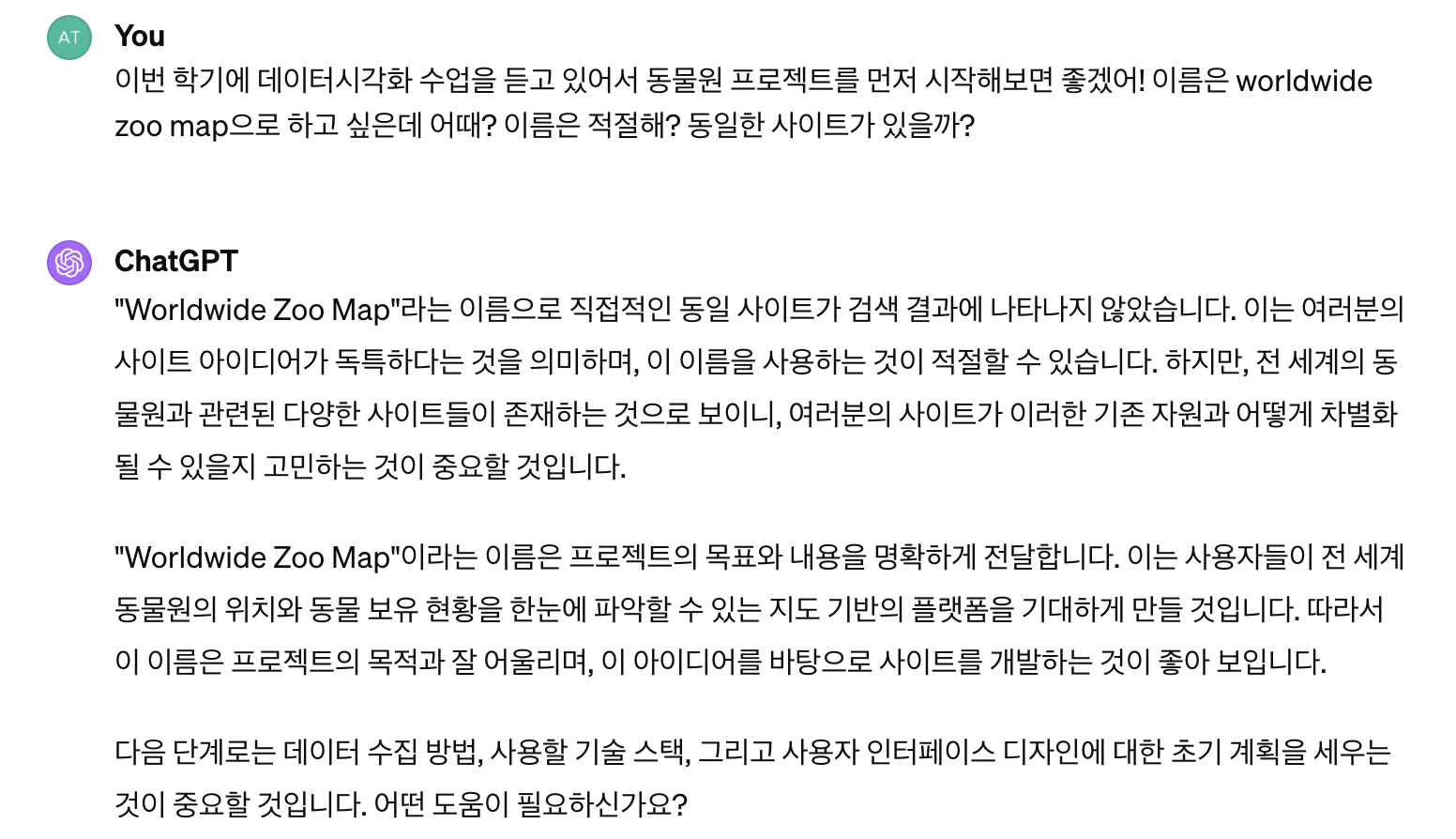 사실 지금은 지피티가 나랑 같이 프로젝트를 진행하는지 모르고 있다