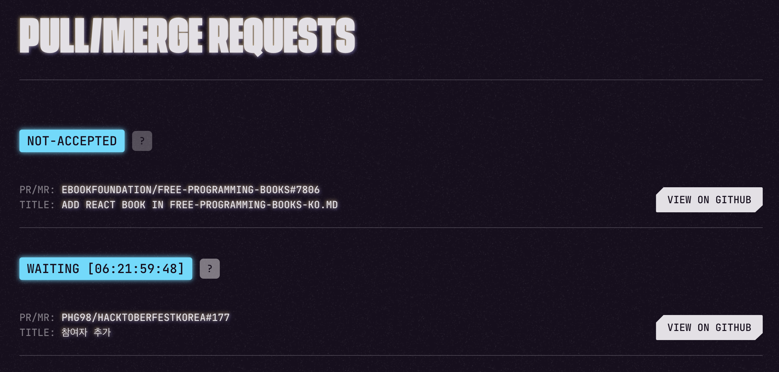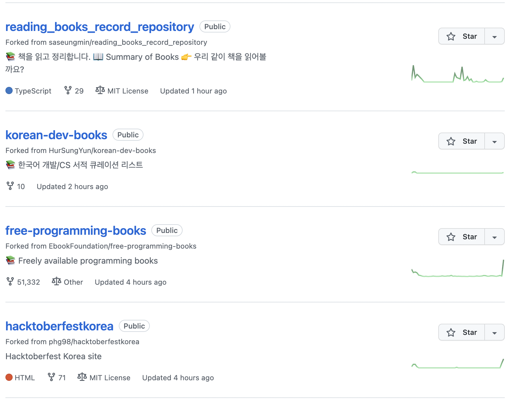저는 첫번째로는 hacktoberfestkorea 저장소를 확인했어요