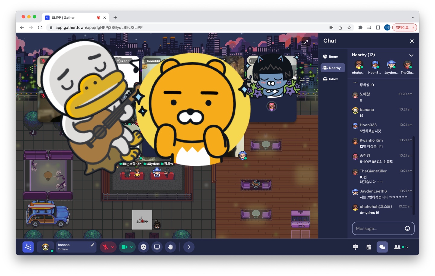 먼저 10시에 게더타운에 모여서 자기소개를 하는 시간을 가졌어요