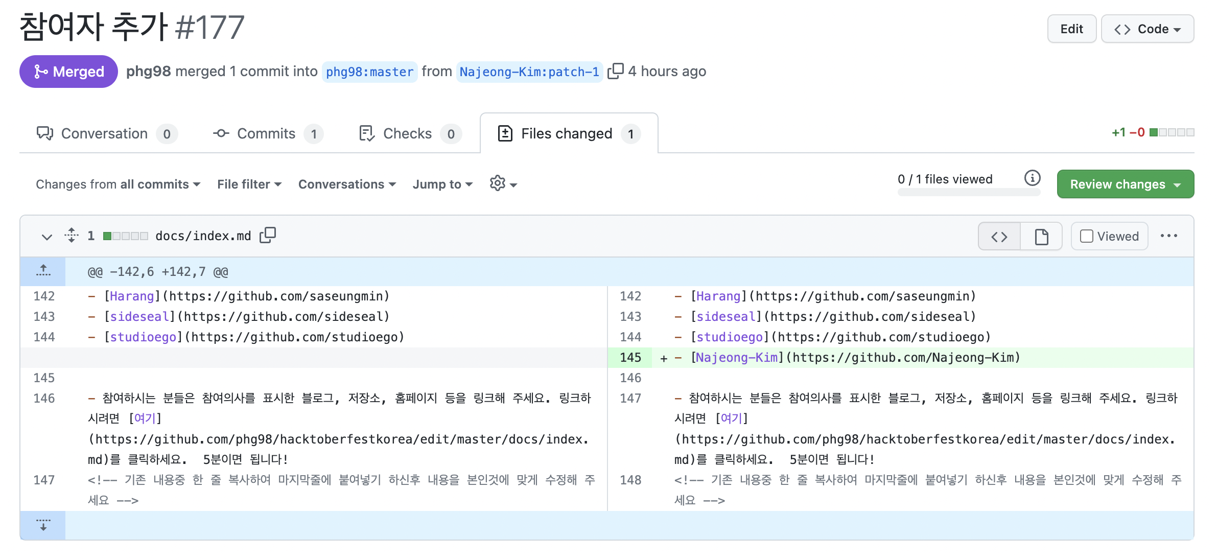 소소한 컨트리뷰션 수다 모임 - 핵토버페스트 버전