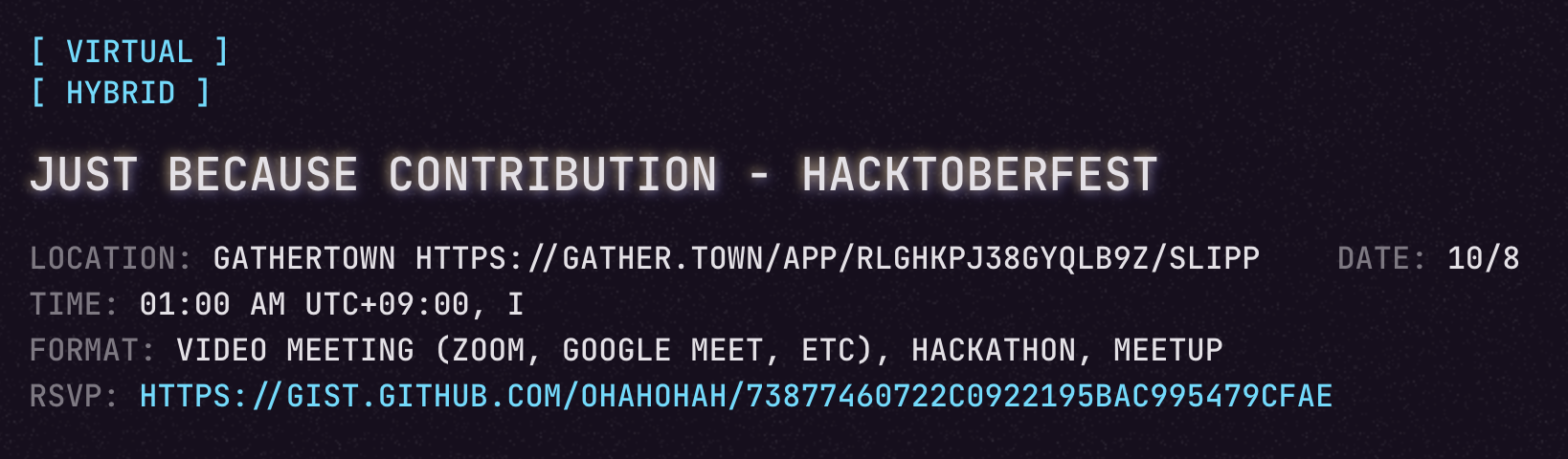 그래서 이번 후기는 핵토버페스트 & 소소한 컨트리뷰션 수다 모임에 관련된 내용이에요